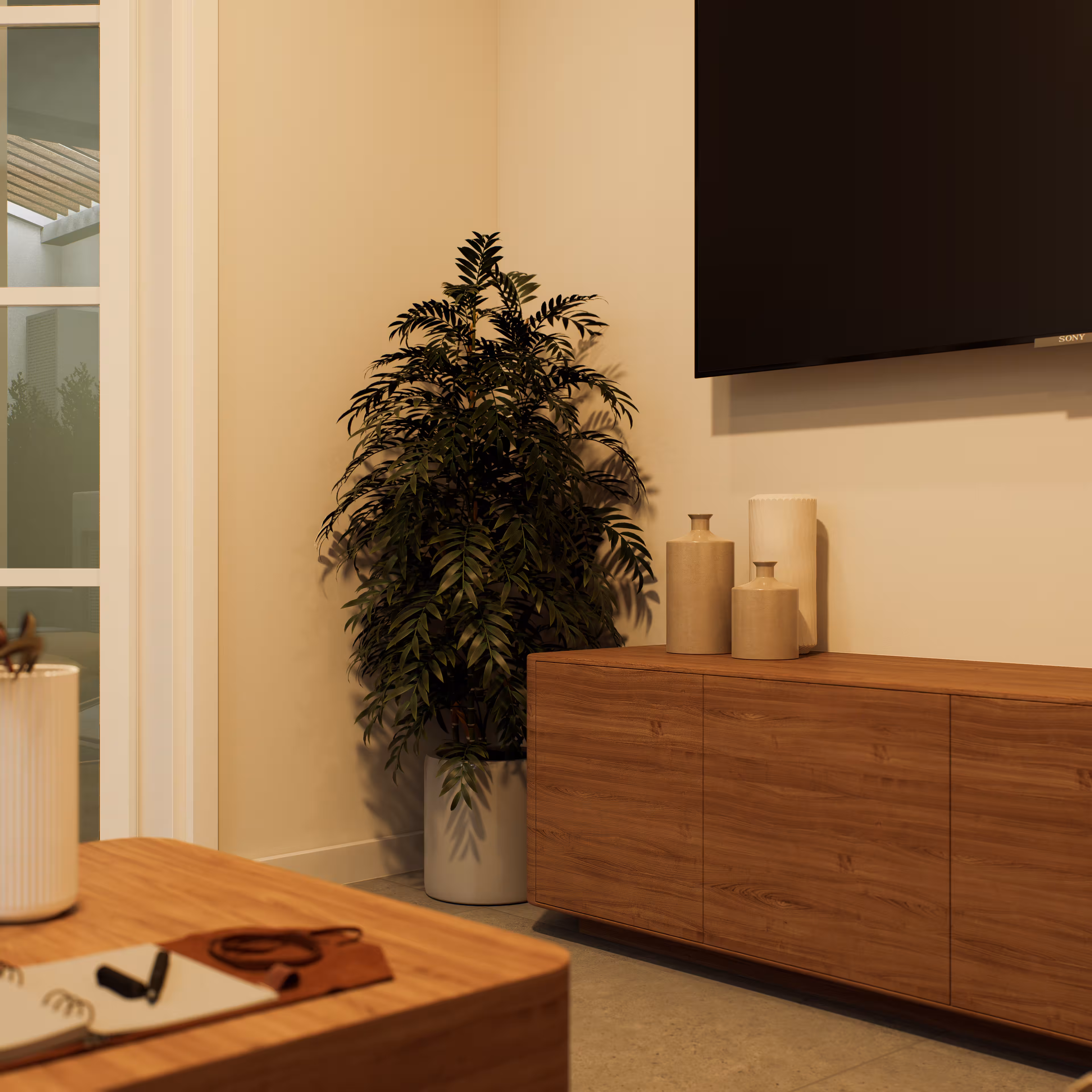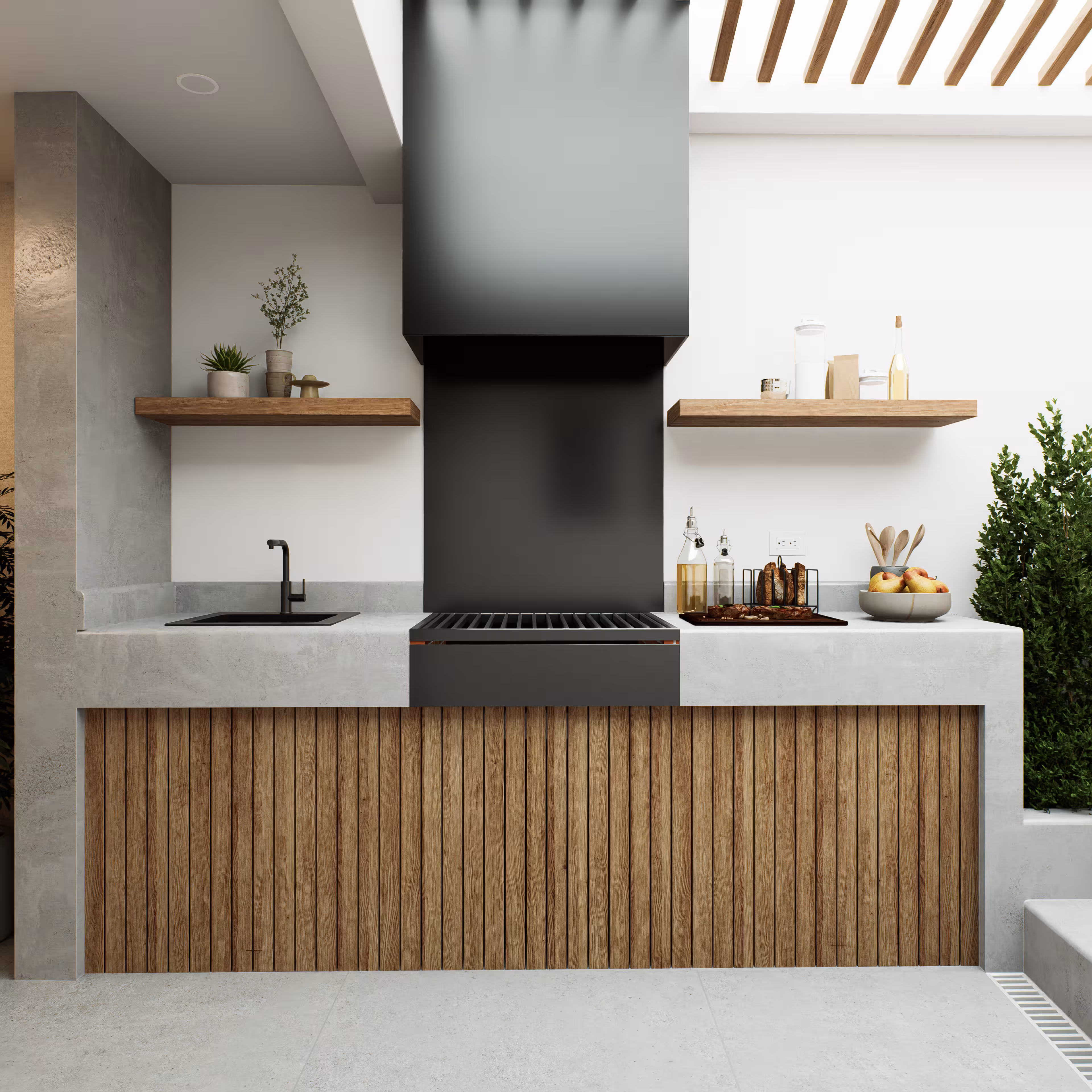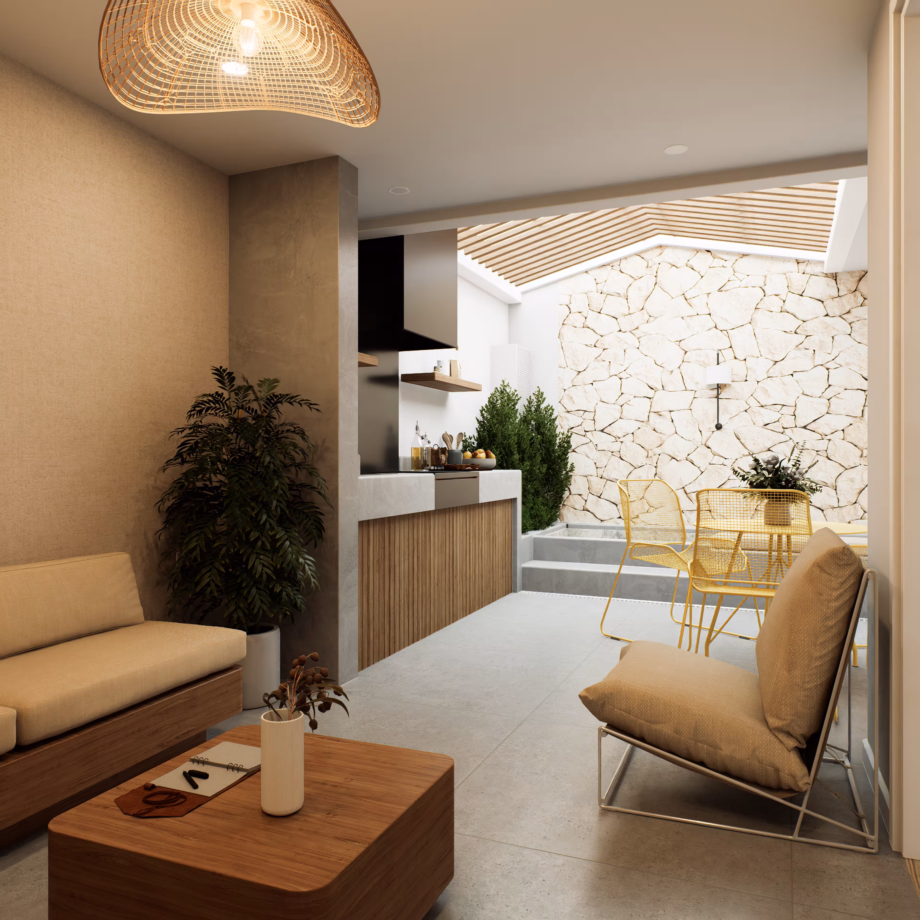 El área social de la casa de Ana y Pedro parte de una premisa clara: el diseño debe integrar arquitectura, uso y atmósfera en un solo lenguaje. El proyecto articula la zona BBQ, el jacuzzi y la sala de TV en un ambiente continuo, donde la proporción, la materialidad y la luz construyen una experiencia equilibrada y habitable.