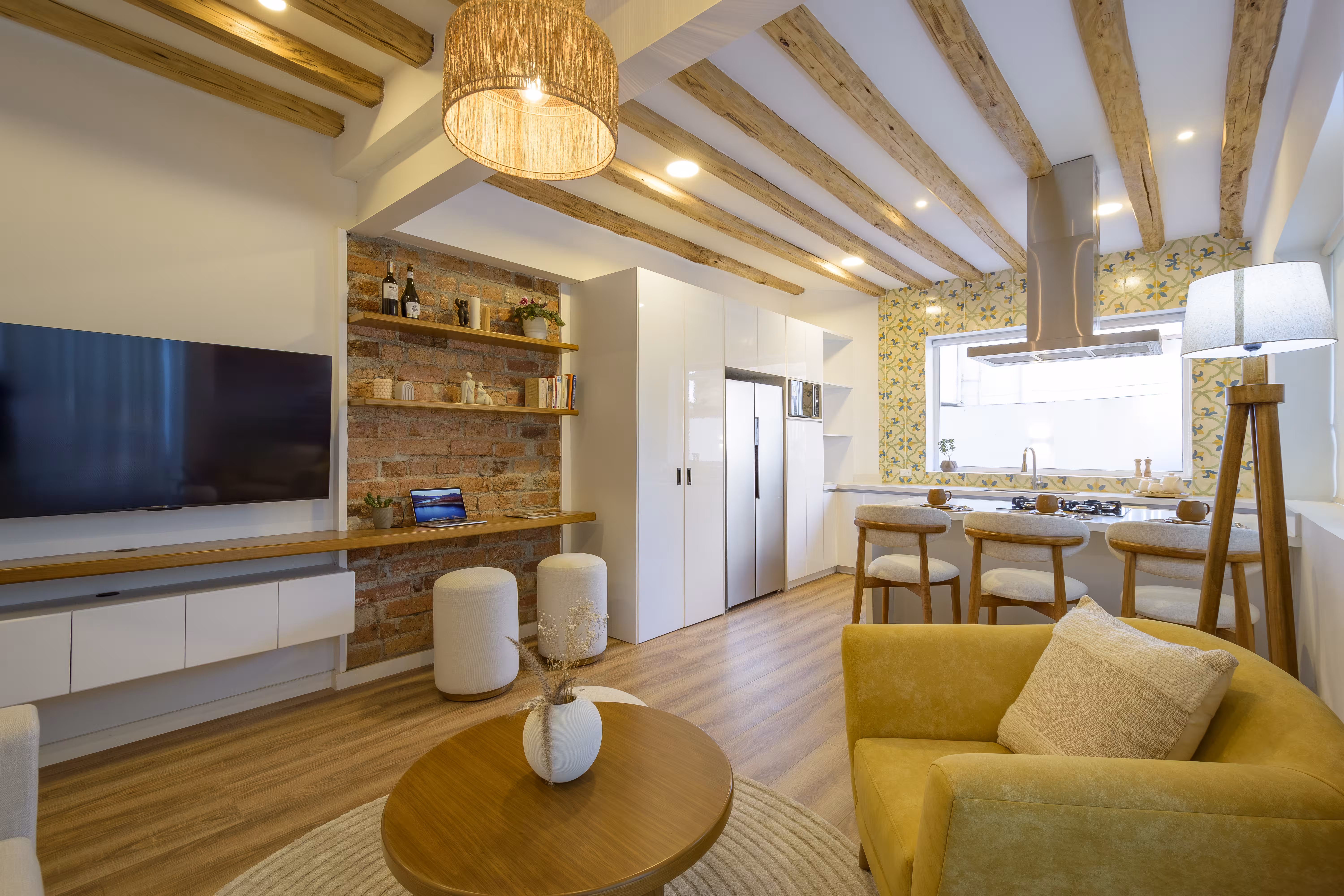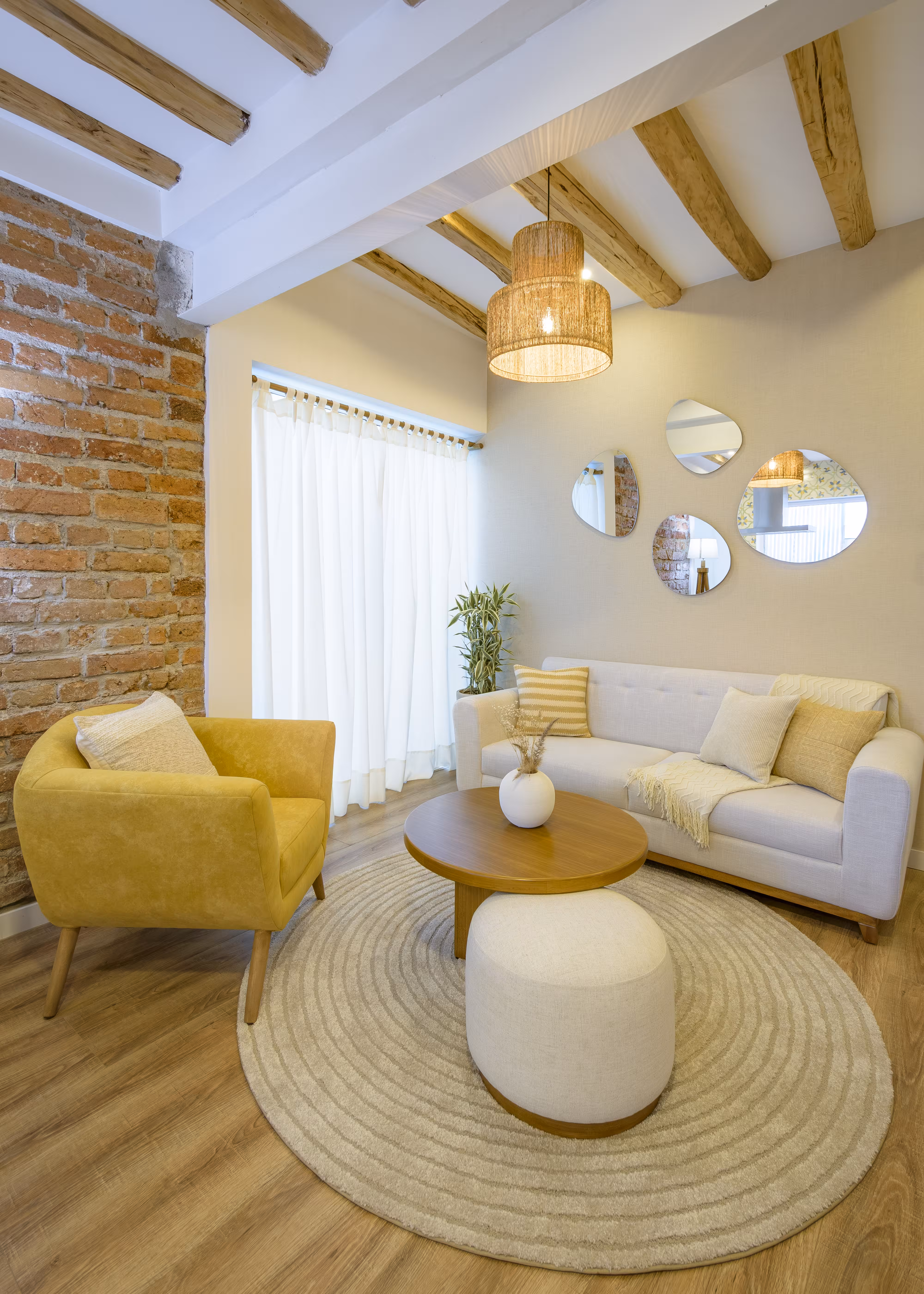 El Departamento 2A en Casa Sabina fue desarrollado como una intervención integral de diseño interior que continúa la visión arquitectónica original del proyecto. Tras haber diseñado y construido el conjunto, el enfoque se centró en consolidar una identidad interior coherente, donde cada decisión responde a la historia y carácter del espacio. El mobiliario fue diseñado y fabricado a medida, y la selección de materiales, tapices y elementos decorativos se trabajó con precisión para reforzar la presencia del ladrillo visto, la madera expuesta y la luz natural como protagonistas.
